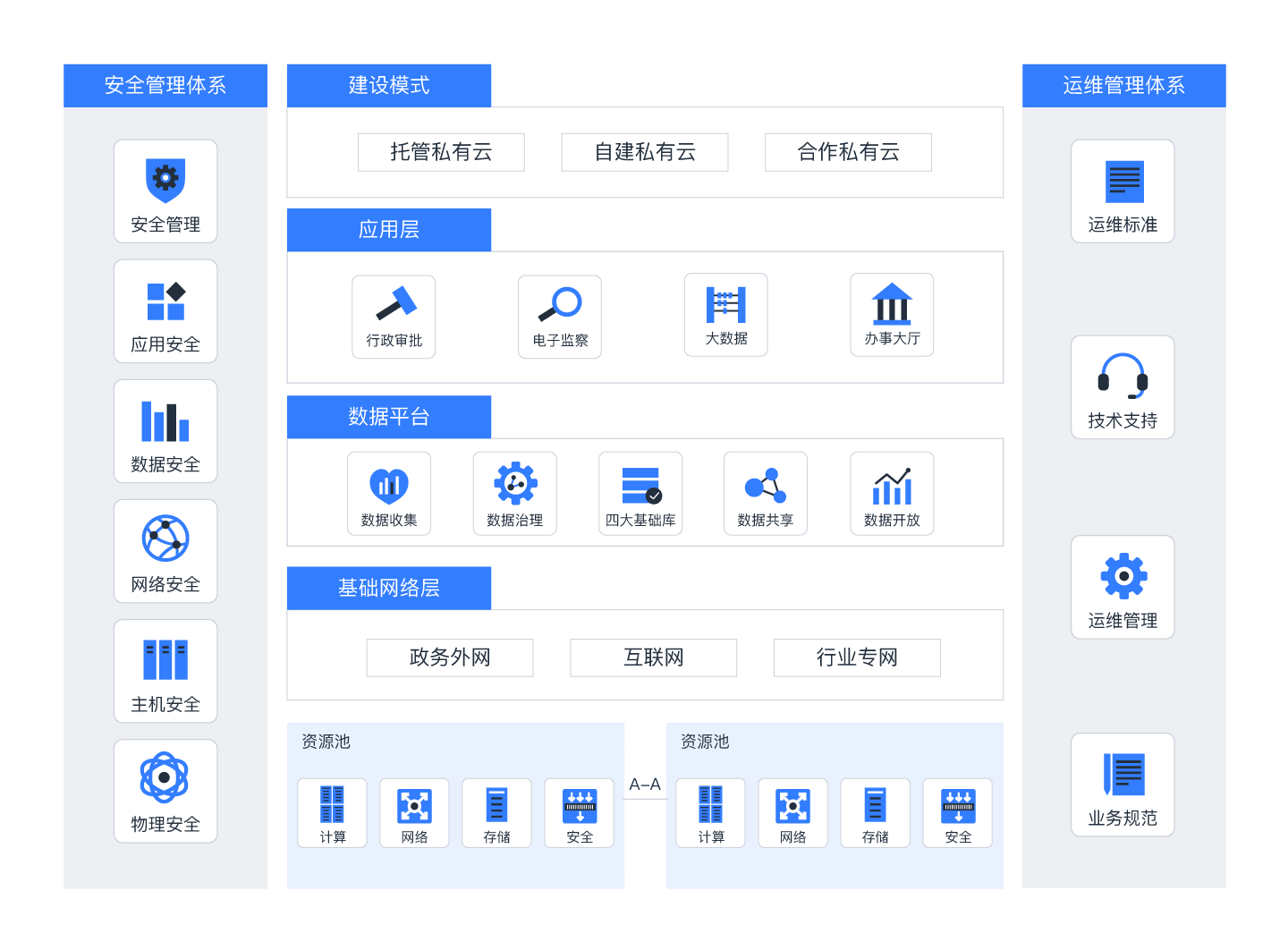 凭借丰富的政企云建设经验,打造多种“政务云”建设模式,为政府部门在实现资源集约化建设、促进业务协同方面发挥重要作用,积极推进“互联网+政务”发展,创新政府管理和服务模式,助力政务服务新局面。